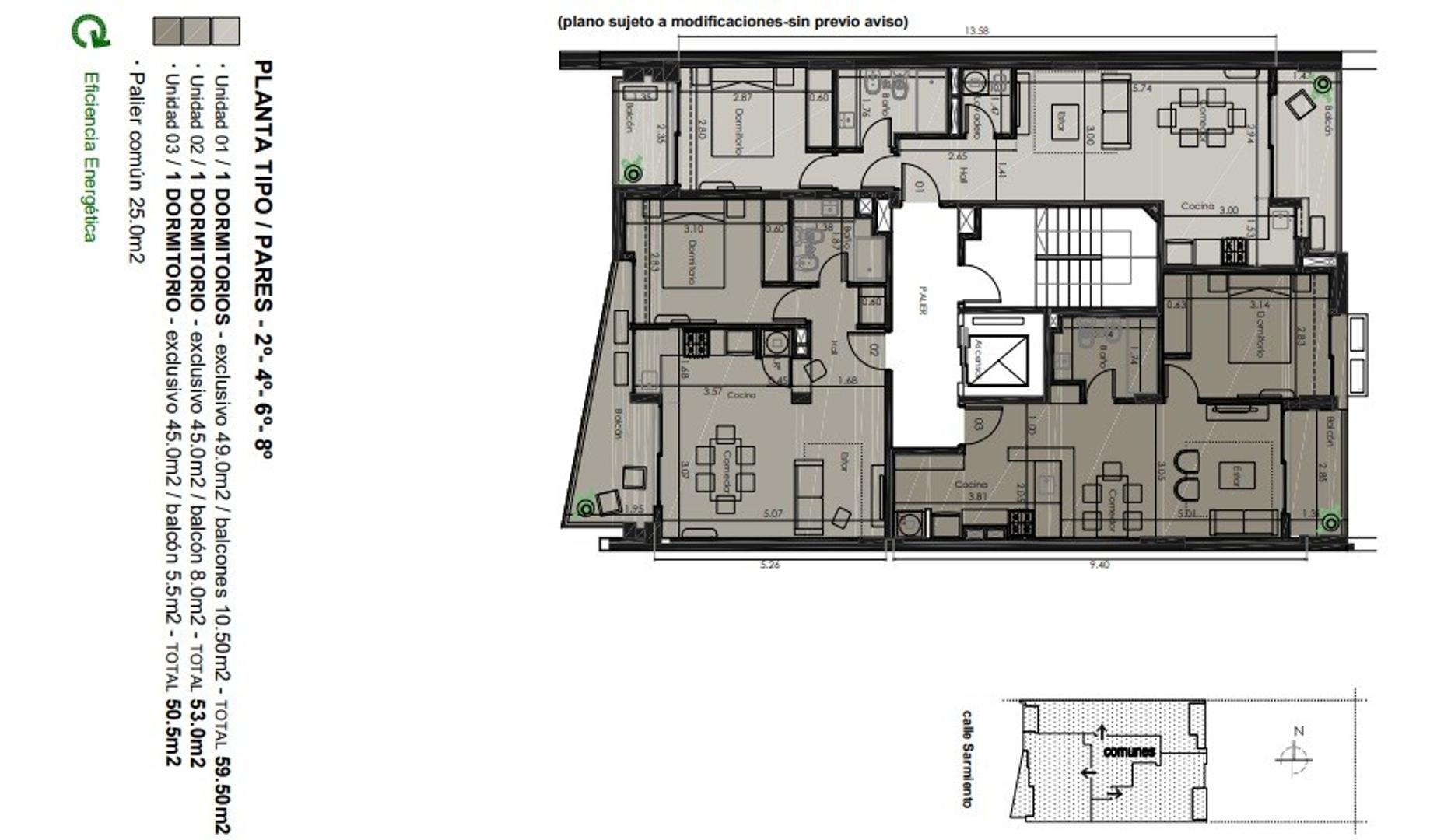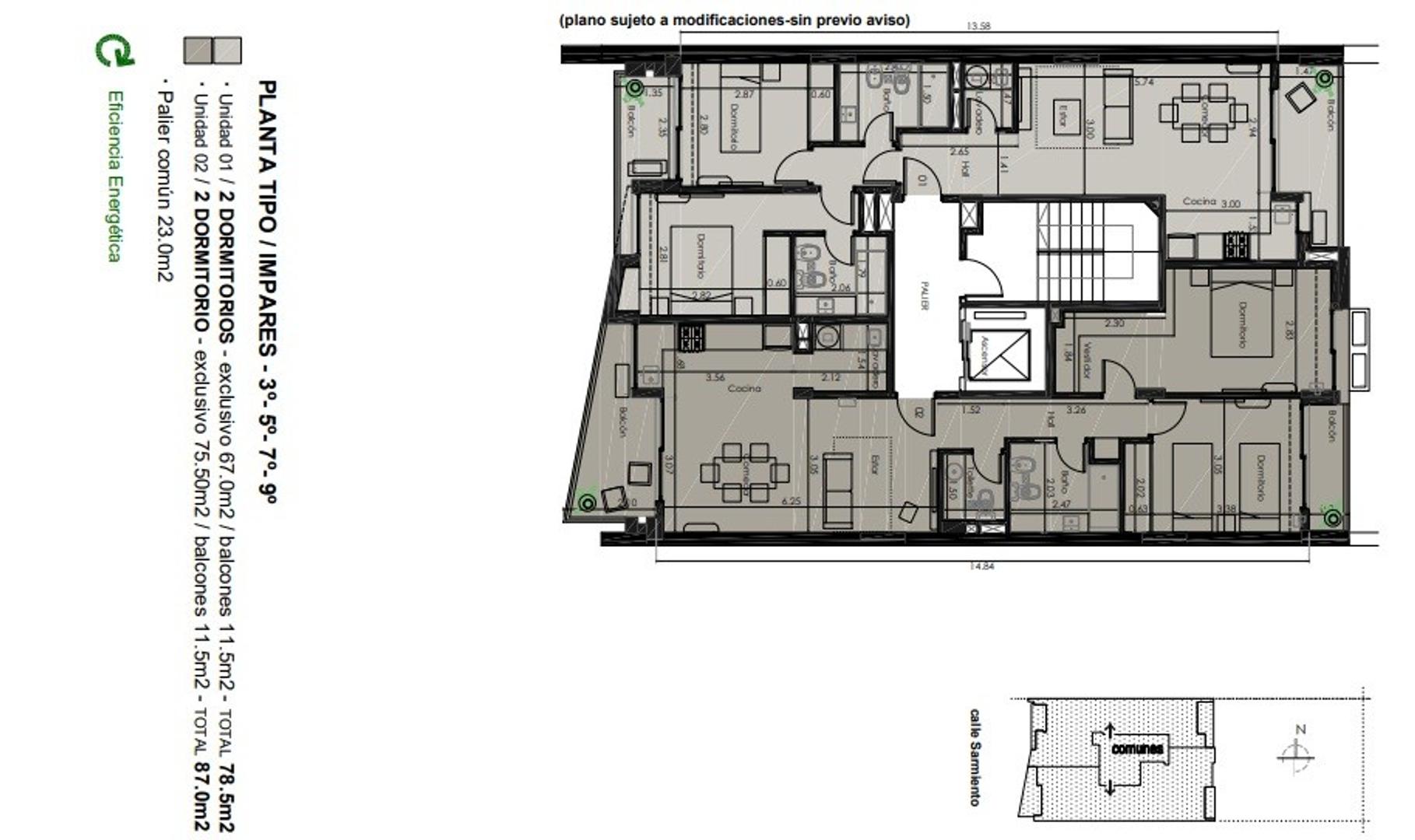 Hay departamentos de 2 dormitorios que poseen 78,5 m2 de uso exclusivos: