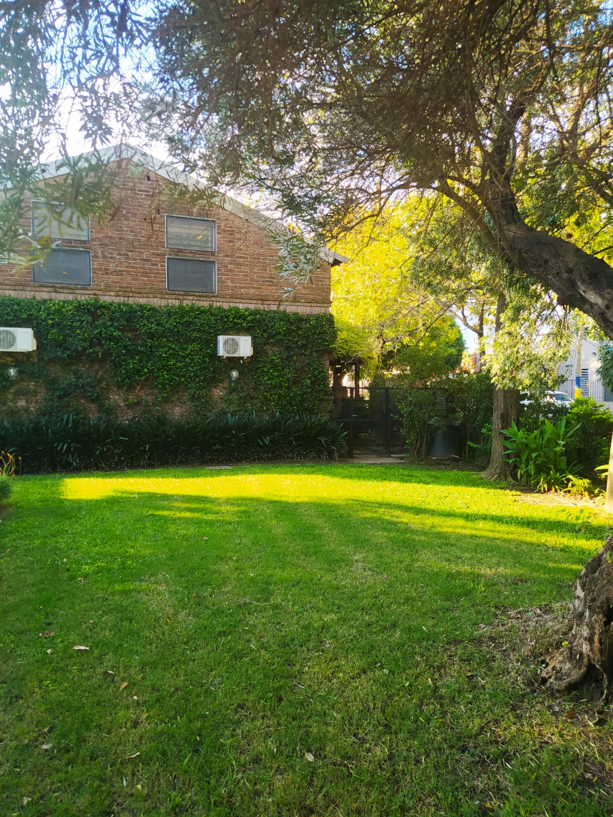 - Parque arbolado con cesped impecable, deck de madera y piscina.